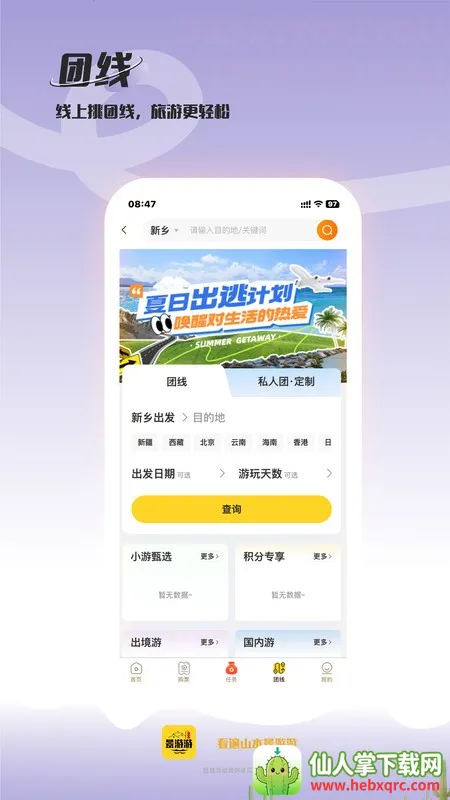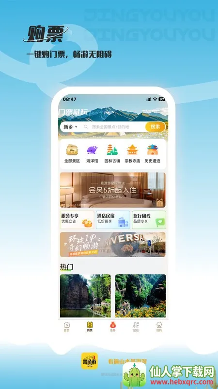 景游游是一款打造文化旅游服务的软件,功能超丰富。它有文旅一站式服务,能查看热门和推荐景区信息,涵盖景区购票、出行、住宿等服务。不仅能在线买门票,还能查跟团路线,不满意支持私人订制专属路线。而且积分可兑换好礼,还有景区智能解说。