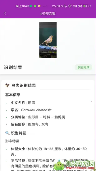 想知道哪个识鸟软件好用?这里给你介绍一款超棒的识鸟软件。它功能强大,能精准识别鸟类品种及各种基本信息。拍照功能超厉害,对准小鸟,在光线充足、拍摄角度清晰时,就能快速准确识别。不仅能详细识别小鸟的中文名称、别名、全名及分类地位,还有多种识别方法,可拍照上传,也能从手机本地相册选图上传。每个鸟类都有高清详细照片。首页还能直接搜索小鸟名称、习性或栖息地,录制鸟叫也能识别,没网时在野外也能用。每次搜索识别的时间和地点会保存,方便查阅记录,数据库定期更新,信息准确全面。不管是专业人士还是业余爱好者,都能满足需求。用它能了解很多鸟类知识,遇到快灭绝的鸟还能申请自然保护,为保护鸟类出份力,真的很不错!