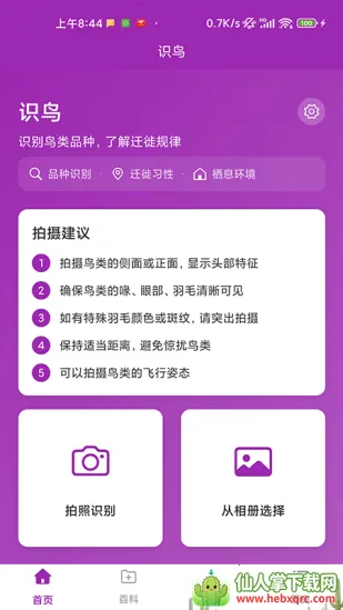 识鸟 2026 最新版本是智能识别鸟类品种的工具软件。拍照功能强大,光线足、角度清时识别更准。能详细识别鸟的各类信息,多种识别方式,有高清照片,可搜名称习性等,不联网能用,还能保存记录,更新数据库。