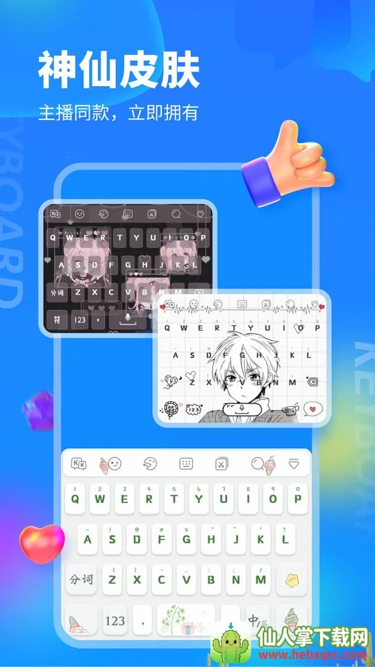3、打造专属输入体验:提供丰富的键盘皮肤、按键音效及聊天气泡,可自由搭配,自定义属于你的独一无二的输入界面,彰显个性。