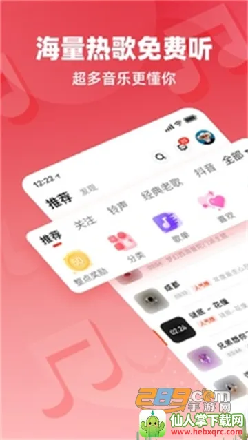 快音听歌免费下载,是成都开心音符科技有限公司打造的能赚收益的铃声软件。超亿用户下载,有海量铃声,涵盖多种类型可免费分享下载。听歌领奖励,还有直播交友、精彩视频等功能,提供至臻音质,海量正版音乐资源。