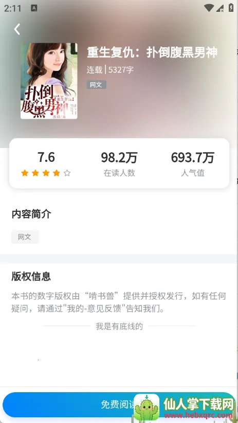 啃书兽APP小说资源丰富,涵盖言情、都市、悬疑等类型,全部免费阅读。具备智能管理功能,严格筛选内容,阅读设置多样。覆盖多种网文题材,每日更新,能按偏好推荐,满足多场景阅读需求。