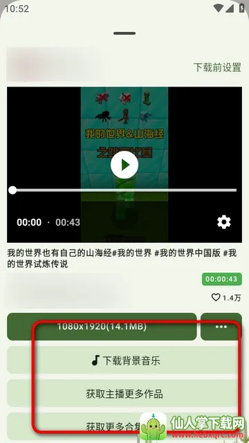 3、点解析后可以看到视频的相关参数,点获取主播更多作品。