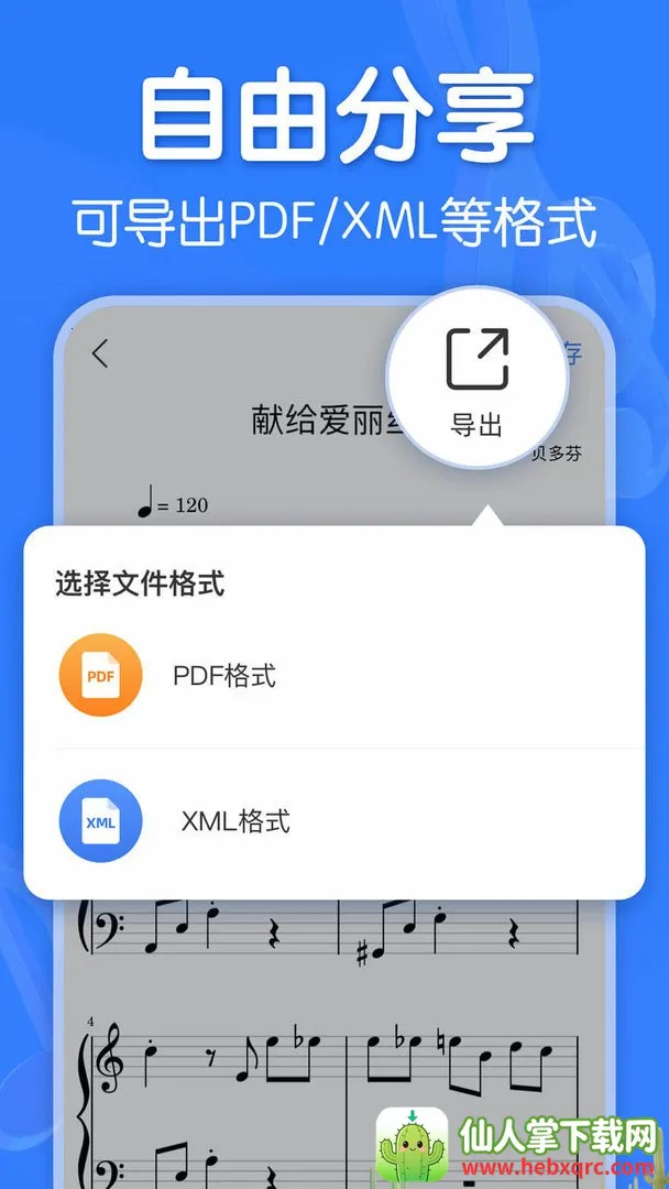 1. 支持多格式导出:支持导出MusicXML、pdf等文件格式,还能导出为PDF、MIDI等多种形式,方便分享给好友或在其他懂音律App上使用,便于交流和展示。