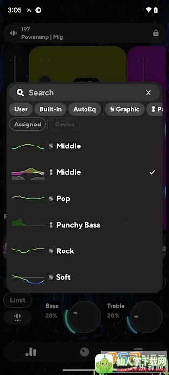 PowerAMP是一款超棒的安卓音乐播放器。它支持多种音频格式,像MP3、FLAC等。其音效超出色,有三大安卓音效可选,还自带EQ均衡器,能调节低音和高音。杜比音效认证手机开启PowerAMP选杜比音效后,把低音旋钮转到最高,超重低音超震撼。不支持杜比音效但支持Beats音效的安卓手机,开启软件会增加Beats音效选项。不支持三大音效的安卓系统手机,也能用内置均衡器配合旋钮调音效。它的均衡器有多种最佳设置,比如“完美低音”,低音醇厚震撼不浑浊,高音清澈穿透力强不刺耳;“极致摇滚”,高低音震撼,声场强大;“最毒人声”,中频人声突出,三频均衡。通过这些设置,能满足不同用户对音效的个性化需求,让你享受超棒的音乐体验。