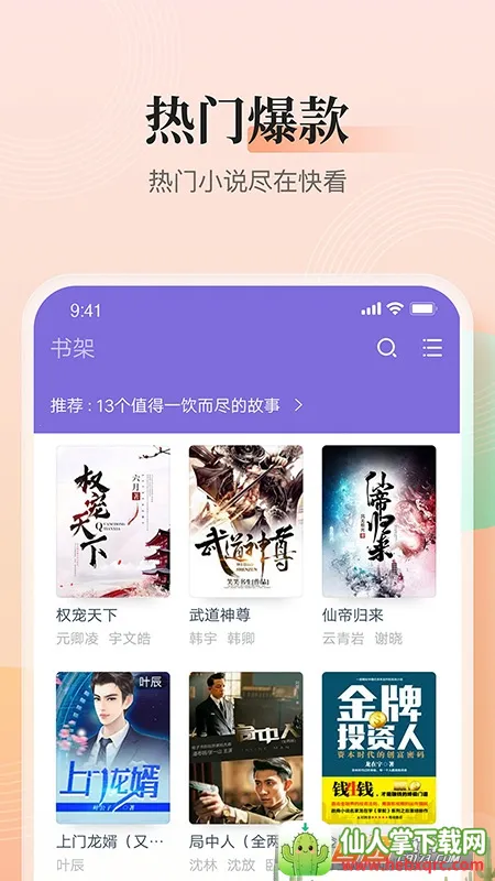 1、海量书库,种类齐全,玄幻武侠、言情都市等各类小说应有尽有。