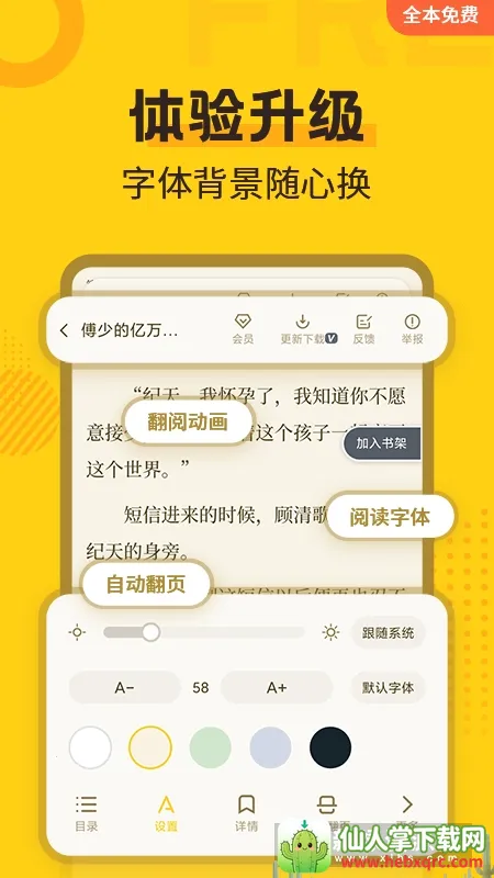 2. 个性化阅读体验:能自由调节字号、字体、字距、背景和灯光,还支持听书、书签、阅读笔记、夜间模式等,打造专属舒适阅读环境。
