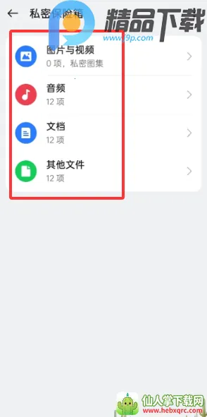 4. 管理很轻松:进入保险箱后,能按分组查看文件,便于对文件进行有序管理,还可通过验证指纹、面部或密码打开保险箱,随心管理内部文件。