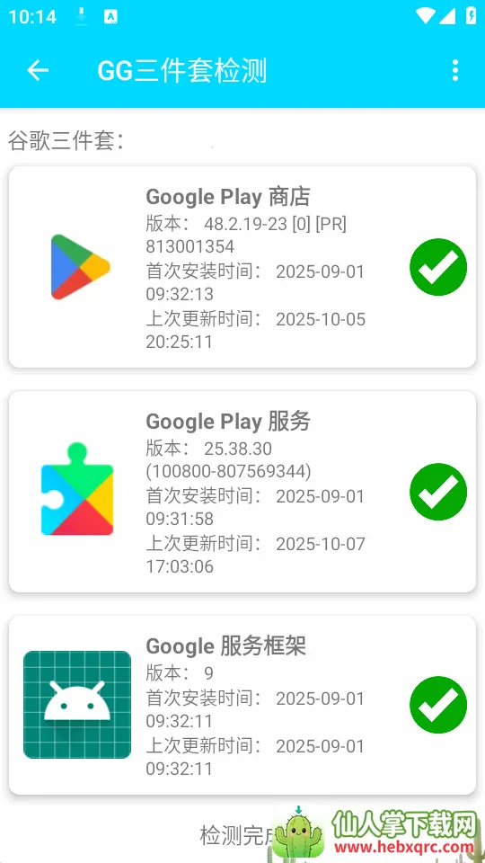 1. 完全免费且安全好用,能快速检测出手机上谷歌三件套是否安装、安装版本及更新时间,可有效排查国际服游戏闪退等不兼容问题。