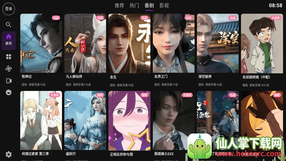 2、选择一个喜欢的视频打开,包含了推荐,热门,番剧,影视。