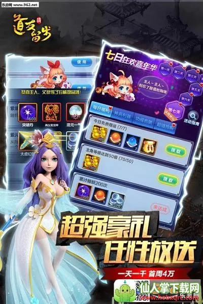 3. 福利丰厚:登录7天送紫金神仙,装备无损继承,非RMB玩家也能玩得爽。