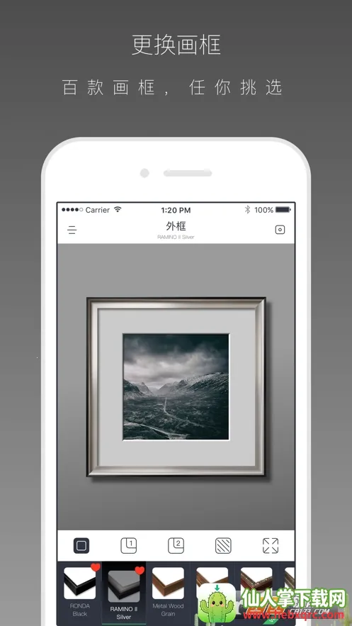 3. 丰富样式可选:外框有107种样式,内框有5种样式,外衬卡纸有27种颜色,能让您轻松更换,打造独具个性的装裱效果,实时预览装裱效果,保存自定义快照。
