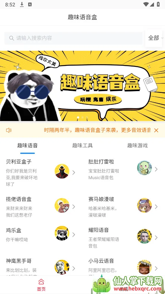 趣味语音盒2026官方正版是一款收录大量热门语音的应用,每日更新。有丰富语音包,操作简单,内存小,搜索便捷,含多种功能及小游戏,支持分享,能满足社交娱乐等多样需求。