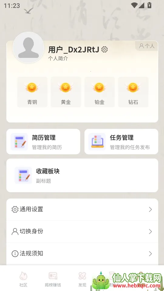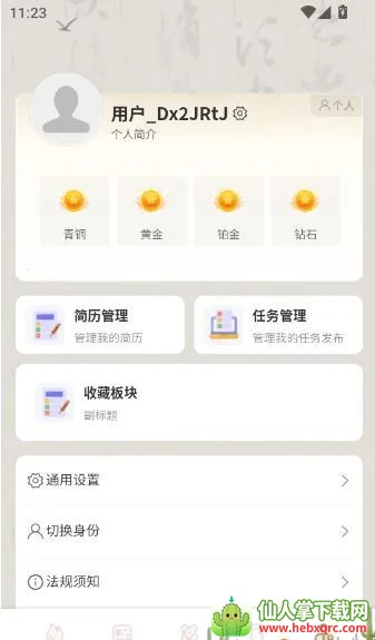 2.到达个人中心管理界面,找到“简历管理”按钮功能点击进入下一步