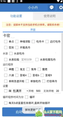 小小丹辅助为玩家带来了诸多便利。它内置详细操作说明,配置自动保存,全功能免费开放。一键开启脚本辅助,悬浮窗控制不影响手机正常使用,还采用防封技术防止闪退并支持自动重启。其能优化游戏画面质量,让场景更清晰逼真,色彩更鲜艳。自动保存游戏参数设置,换设备或重装软件也无需重设。智能辅助策略库提高胜率,丰富丹药系统和全网美化包增添趣味。打开软件需开启悬浮权限,在功能设置中可按需开启功能并进行高级设置,高度个性化定制满足不同玩家需求。