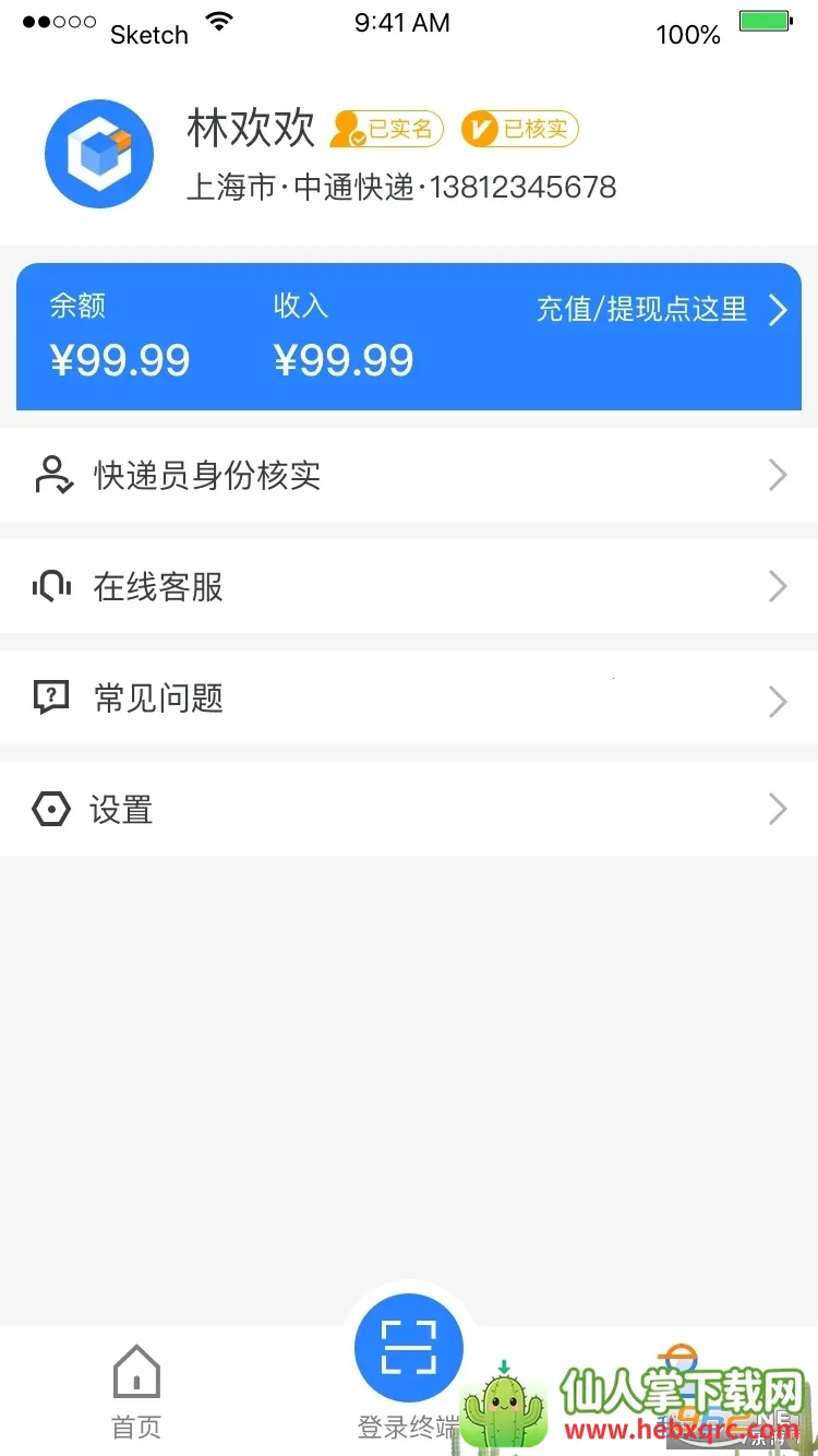 4. 服务贴心周到:提供在线客服,能随时解决使用需求;可在线拨打电话,方便联系取件人;还能了解收入情况,进行充值与提现,让快递员更放心派件。