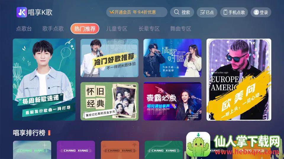 想免费畅唱海量歌曲吗?唱享K歌tv版就能满足你!它是一款超棒的电视K歌软件,获音集协授权许可,有30万正版曲库,新歌热歌随时唱。这里能让你开心自由地唱歌,网红歌曲也能挑战。智能搜索可快速定位附近KTV。还能一键保存自己唱的歌并方便分享。它有免费唱歌的福利,每天都能找乐子。多种音效供你挑选,音乐每天更新。软件允许通过多种检索方式找歌,像按歌手、流行年份、歌曲种类等。通过官方活动能获取唱享K歌兑换码,在会员界面或官方微信客服页面留意官方活动,拿到兑换码在应用兑换页面输入激活,就能免费获得会员使用权限,尽情享受更多K歌特权,快来体验吧!