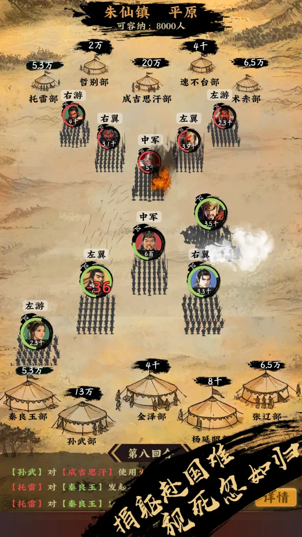 4. 自定义武将:自由度极高,可收集名将并自定义操练。针对武将特性定制训练和升级路径,打造专属战队,提升军队战力。