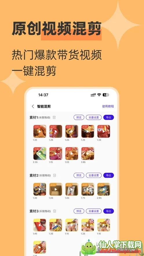 1. 操作简单易上手,零基础也能做爆款视频。通过算法将多个热门爆款好物视频按镜头切分混剪,组合成新的爆款视频。