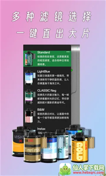 3. 经典胶卷模拟,照片充满故事感:模拟多款经典胶卷,赋予每张照片浓厚的情感和故事感,让平凡的画面变得生动起来。