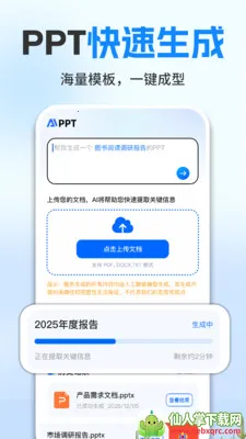 2. PPT快速生成,海量模板一键成型,还能上传文档提取信息生成。