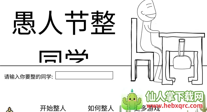 愚人节整同学是校园恶作剧闯关小游戏,能选角色在不同场景,用道具整蛊同学、老师。有各种道具,完成任务解锁新内容,还会影响与同学关系,考验脑洞、手速,兼具欢乐与思考,是校园派对必备。
