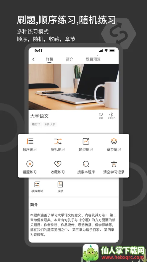 2. 多样练习与模拟考试:能测试学习效果,根据题型和分数选择形成试卷,真实模拟测试,还有多种刷题模式。