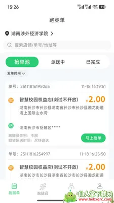 2. 抢单池丰富多样,有学校周边待配送订单,方便跑腿员随时抢单派送。