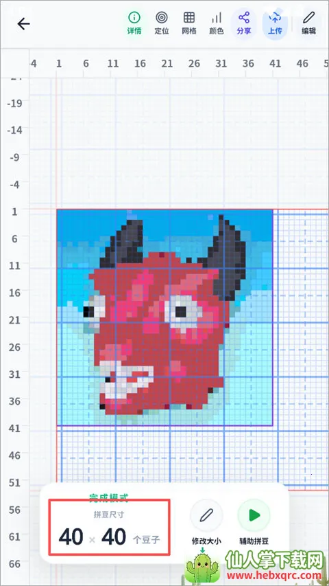2、导入图片后,自动将普通照片转换成拼豆图纸,这里显示拼豆大小