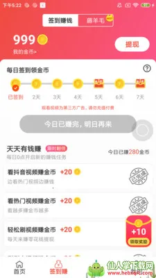 3. 金币生财:日常签到和激励视频任务都能获取金币,金币可直接兑换现金。