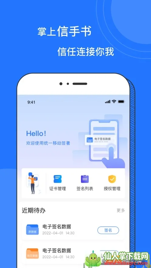 掌上信手书2026官方正版由北京数字认证股份有限公司出品,致力于提供安全便捷的电子签署及电子印章服务,打造移动设备信任中心。新版支持用国家网络身份认证凭证登录,还优化了用户体验,使用更流畅。