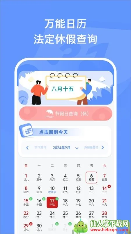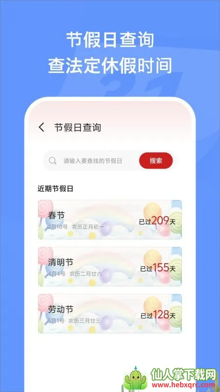 1. 支持多种节假日计算模式,能精准查询假期与调休日,让您轻松知晓放假安排。