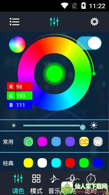 幻彩宝莲灯是实用灯光控制工具,连接灯光后可调节颜色、闪烁频率等,支持音乐模式。采用傻瓜式操作,界面简约。模式多,控制简单,还有多种场景模式,有光效注册、应急灯效果等,不断更新修复bug。