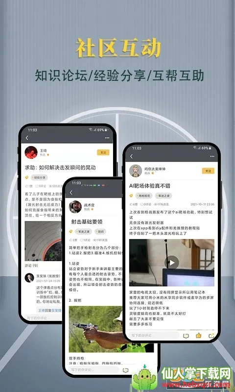3. 提供便利投屏选项,可投屏到电视、电脑、平板甚至白墙,足不出户享受射击乐趣。此外,大咖级老师提供深入专业理论知识和干货,知识社区能答疑解惑,专业教官陪伴指导,社群伙伴陪练交友,还有全网积分排行。