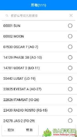 星历界面提供所有星历或常用星历展示,可通过卫星编号或名称进行动态模糊搜索,还能切换显示模式。