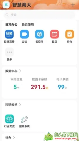 HDZX(智慧校园平台)即海大在线App,由大连海事大学官方打造。整合教务、生活与社交服务,涵盖查课表成绩、缴网费水电费等功能,还有会议管理、待办任务等,支持无卡化生活,提升师生工作学习效率。