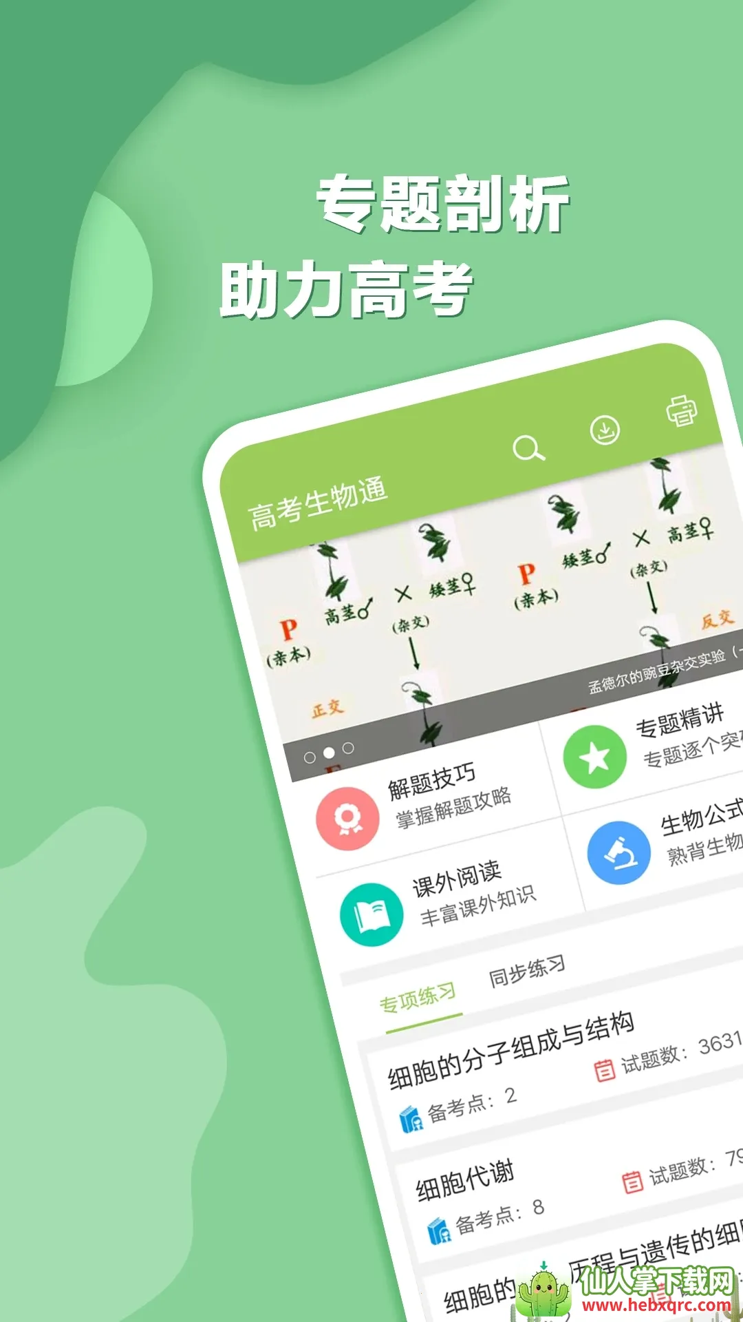 高考生物通是专为高考生打造的生物复习备考软件。有丰富真题题库,涵盖各知识点且解析详细,支持多版本教材同步练习,能错题自动分析,还有名师答疑、考前辅导等,助力提分。