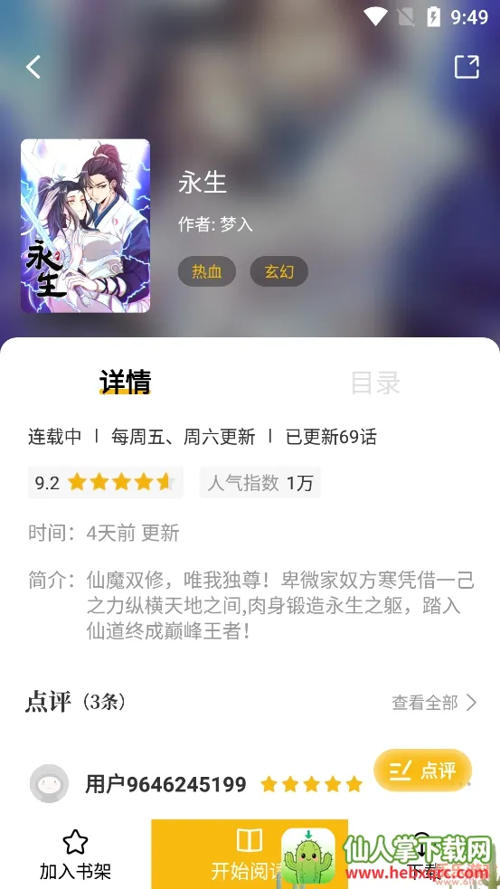 智能推荐:基于用户阅读历史和偏好进行智能推荐,轻松发现自己喜爱的漫画,还能根据喜好调整漫画作品的显示效果。