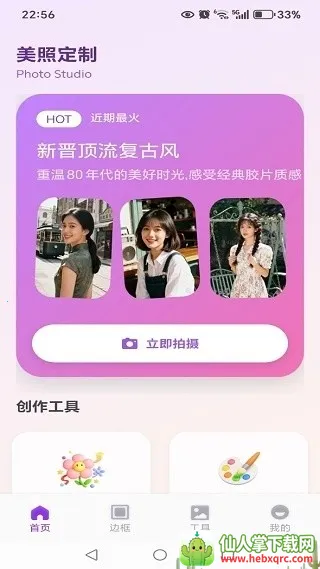 1、安装app后进入首页,平台带来了美照定制、创作工具等。