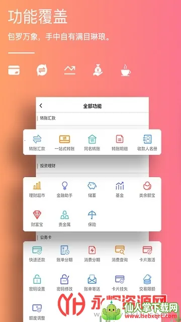 1. 功能覆盖全面:涵盖转账汇款、投资理财、公务卡、网络贷款、生活服务、账户管理、安全中心以及行政专区等八大模块,同时提供在线客服、金融助手、金融资讯等贴心服务,满足多样金融需求。