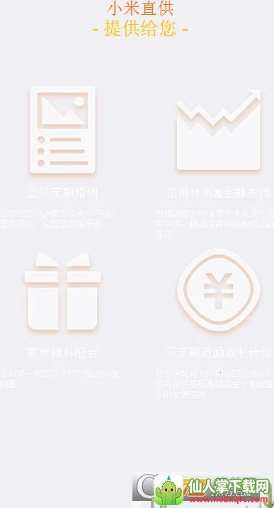它功能强大,平台直营小米公司旗下所有官方产品,像手机、电视、笔记本、智能硬件等生态链产品应有尽有,品类超丰富,给消费者多样选择。还提供丰富产品收益政策,涵盖开店物料、培训课程、市场宣传、售后服务等多方面支持。有信用体系金融支持,根据销售和区域增长情况评级判断金融等级。公司定期给销售伙伴培训产品营销模式、经营管理等。针对销售增长比例高的区域,有不定期激励成长计划,提供高额激励奖金和更大发展空间。