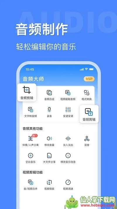 音频大师安卓版是专业音频编辑处理软件,支持剪辑、提取、合并、裁剪等,能转换格式,还有录音转文字等特色功能,操作简单,广泛用于音乐制作等领域,受用户喜爱好评。