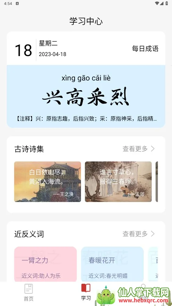 1. 丰富词汇量:软件内拥有丰富的词汇量,涵盖汉语字典、成语词典、近义词反义词词典、中国历代诗词等内容,能满足不同需求。不管是查询汉字、成语还是学习古诗词,都能找到相关学习专区。