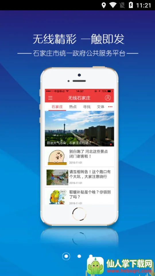 无线石家庄是石家庄广播电视台打造的新闻资讯和生活服务类客户端。依托广电优势,有新闻、直播等多样内容,涵盖时政民生等。能一键订阅,还有爆料社区等特色,提供公交查询、缴费等便民服务。