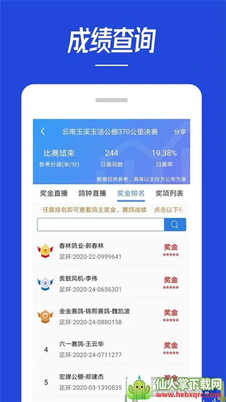 可查询赛鸽成绩,知晓信鸽是否获奖,还有驯鸽视频助您轻松训鸽。