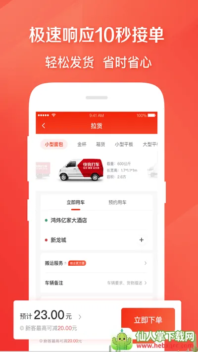 响应迅速:手机下单15秒快速响应,司机平均15分钟抵达指定位置,随时满足货运需求。