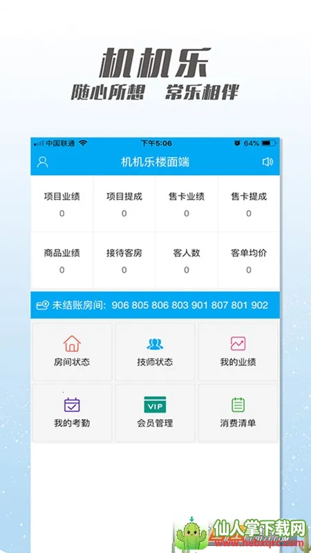 机机乐楼面端最新手机版专为足浴行业商户打造,集成移动办公功能。能实时掌握业绩动态,自动化处理排钟等事务,界面优化,功能丰富,如一键查询业绩、管理会员等,还增加了权限控制和手牌管理优化。