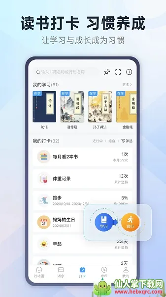 方便个人使用:能进行读书笔记、践行打卡,有多种打卡类型,还有读书践行圈,完善的数据统计模块可多维度记录点滴积累,笔记回顾能加深记忆,助力个人成长。