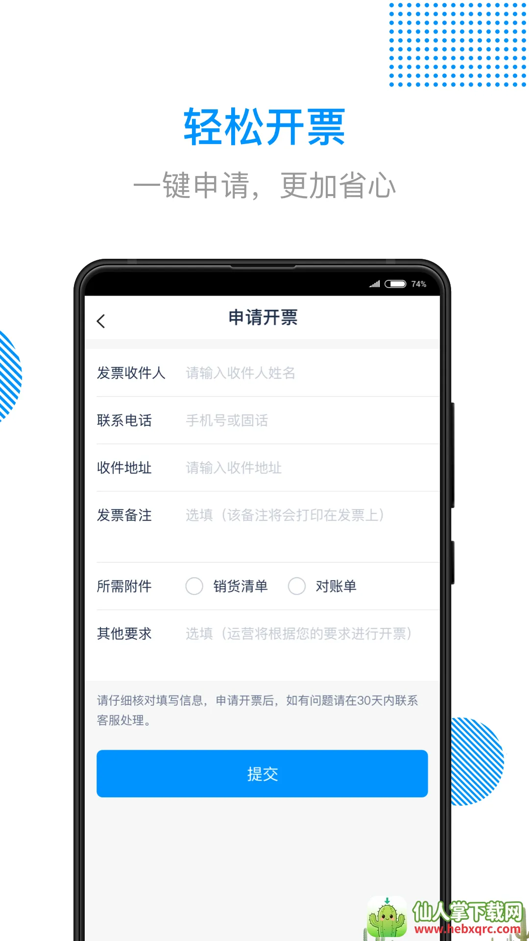 3. 开票超省心,在线一键申请,流程简化,开票历史清晰可查。