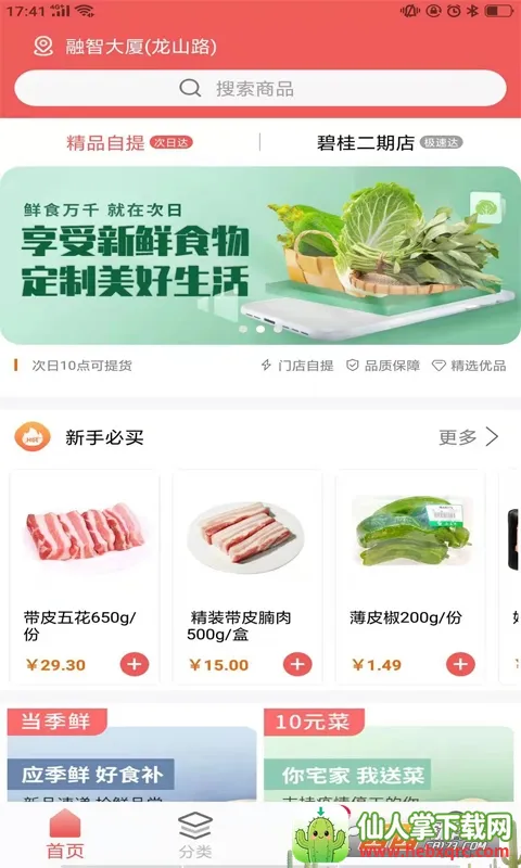专注定位购物,打造同城生鲜送货上门模式,由专业骑手配送。